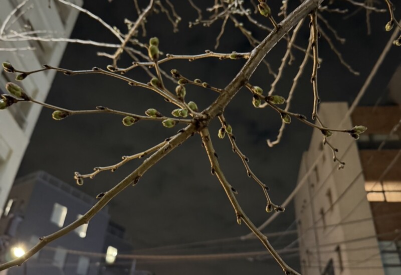 オフィスの前の緑道の桜が、本日💕😳開花しはじめました✨ 一昨日に、撮影した時は、蕾が膨らんでいたけれども...
