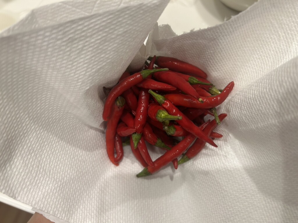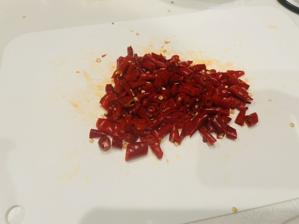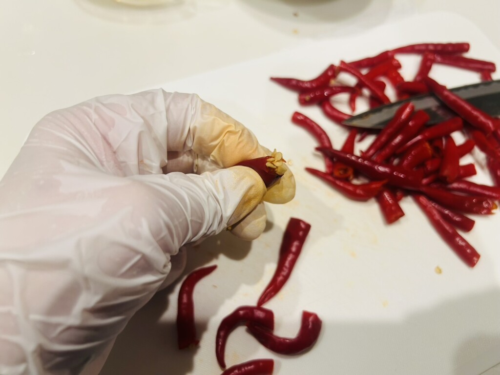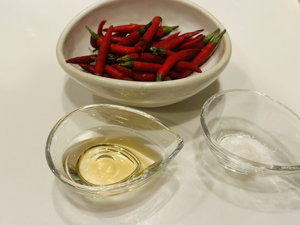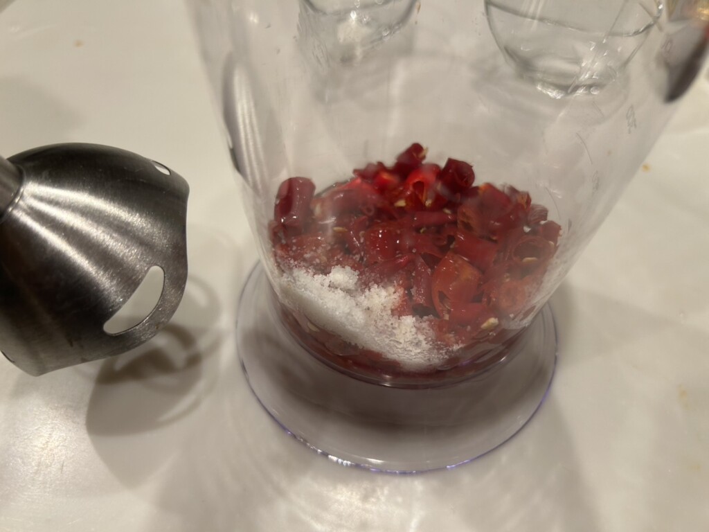 ③唐辛子を細かく刻み、米酢と塩を一緒に入れて