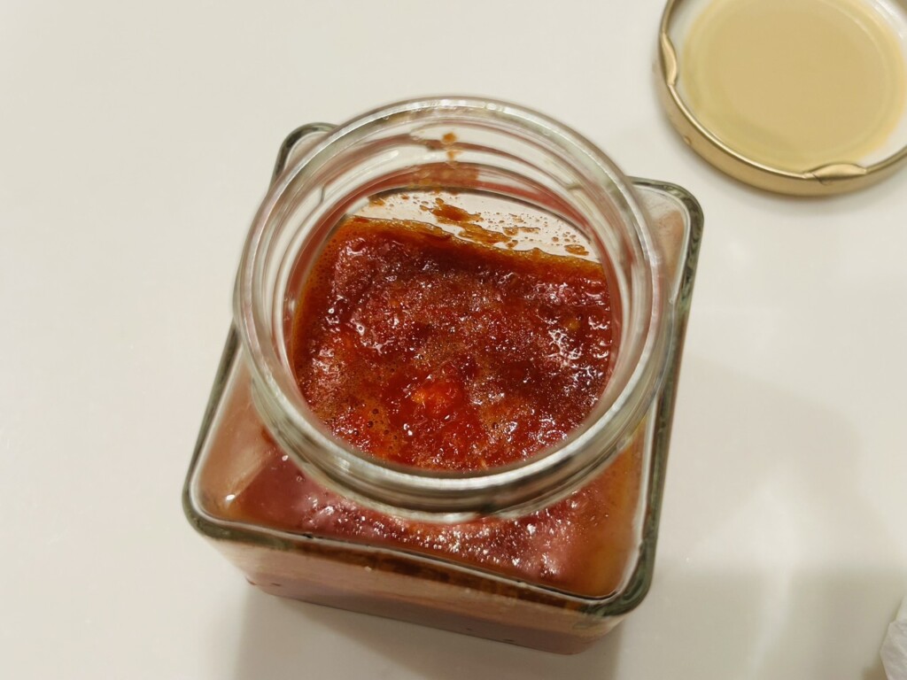 ④清潔な瓶に入れて、2週間ほど冷蔵庫で熟成させたら完成です。