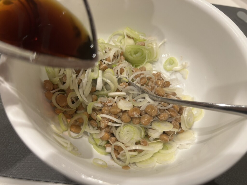 納豆と混ぜて粘りがでたらめんつゆをいれて