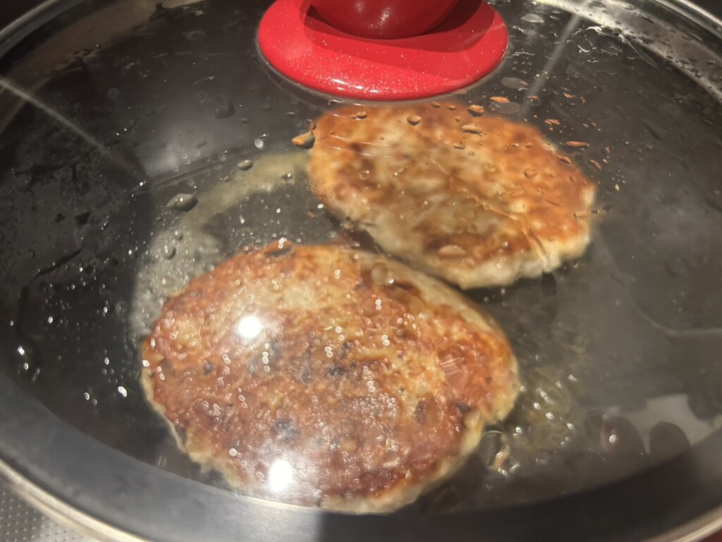 片面が焼けたらひっくり返して蓋をし弱火で焼きます。