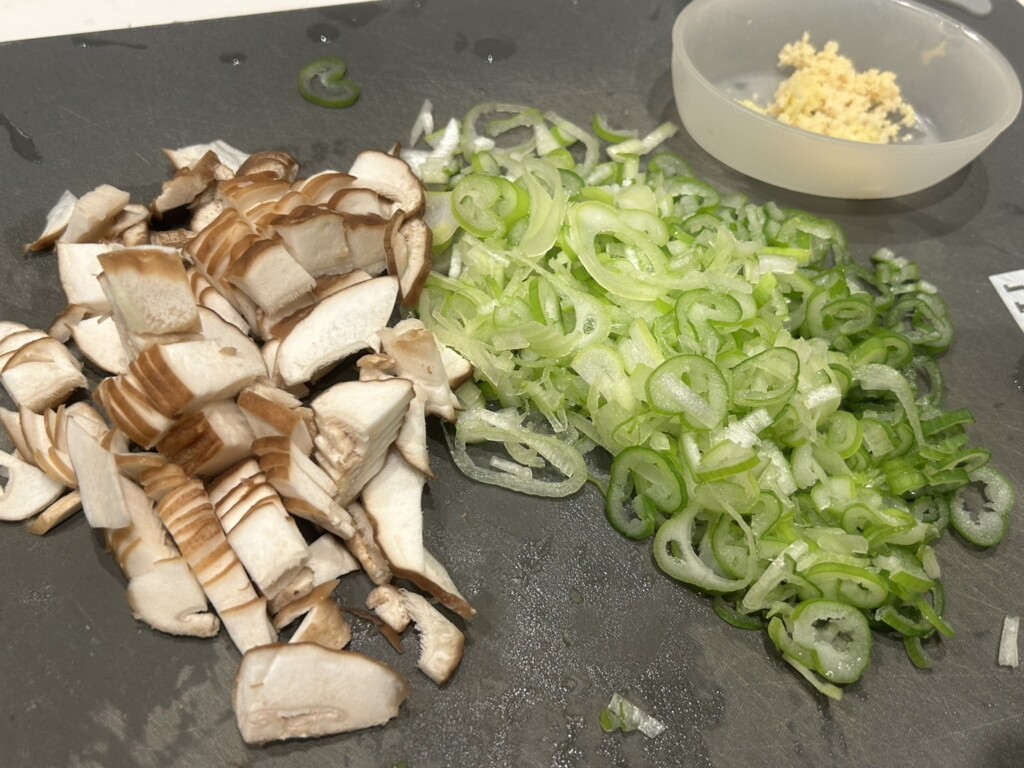 椎茸は薄くスライスして1センチ幅位に切っておきます。