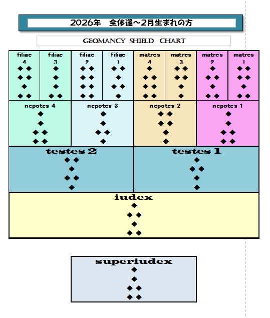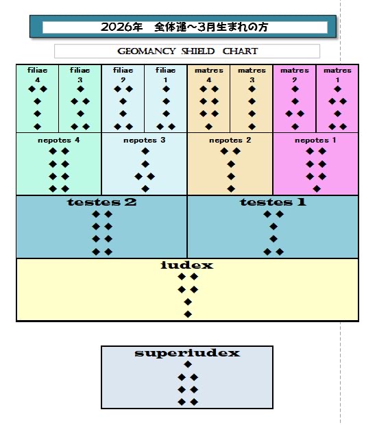 今回も<A.T.迦楼羅の今週のゲオマンシー「シングル・シンボル」占い>はお休みにして前回に続いて2月生まれさん、3月生まれさん、4月生まれさんの今年の全体運を見てみましょう。