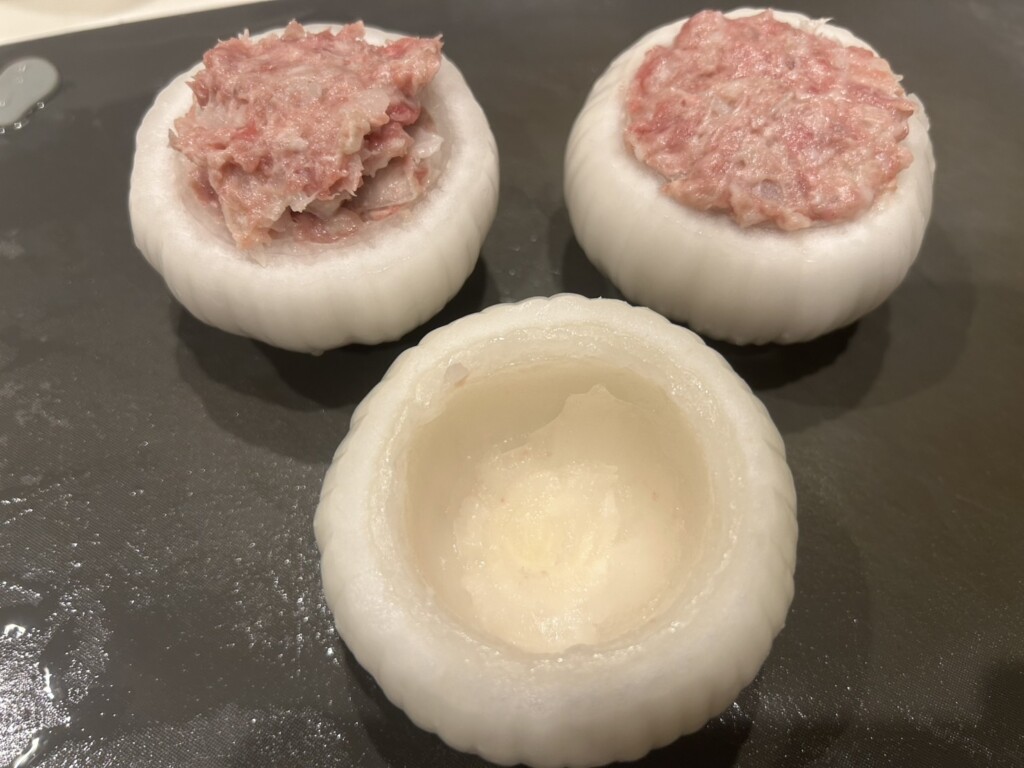 ④くり抜いた玉ねぎに③を詰めます。